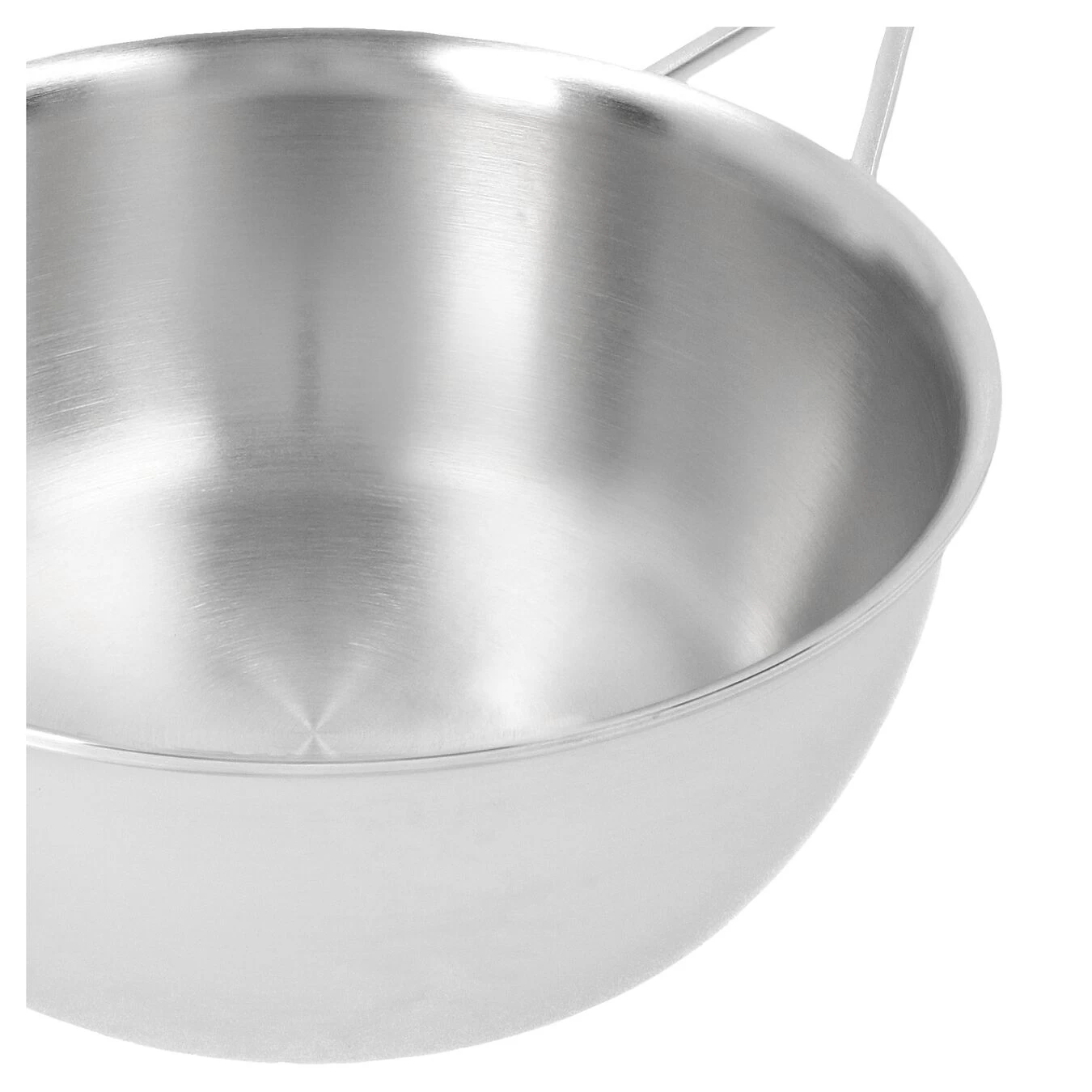 La padella conica per sauté si distingue per la sua forma particolare, che si allarga nella parte superiore. Il diametro della base di 16,5 cm si estende fino a 24 cm sul bordo superiore, consentendovi di utilizzare comodamente una frusta. Ciò significa che si possono mescolare salse cremose o frullare creme e mousse fino a renderle leggere e spumose. La padella conica per sauté è pensata principalmente per la preparazione di salse, ma in questa padella da 24 cm si possono preparare anche altri piatti. La casseruola ha una capacità complessiva di 3,3 litri. Progettata dal designer belga Stefan Schöning, questa pentola della gamma Industry si ispira alle pentole puriste americane. Il design combina un’elevata funzionalità con linee eleganti. La casseruola è realizzata interamente in materiale a 5 strati di alta qualità. Questo materiale è ideale per le pentole per sauté, poiché la combinazione di diversi strati di acciaio inossidabile e alluminio conduce il calore dalla piastra di cottura in modo eccellente e uniforme. Anche le salse più complicate possono essere preparate con successo. È possibile utilizzare questa padella conica per sauté su tutti i tipi di piani di cottura, compresi i piani a induzione. La pulizia è facile e veloce, grazie all’acciaio inossidabile trattato con Silvinox®. La finitura in Silvinox® protegge i vostri nuovi utensili da cucina dallo scolorimento e favorisce la facile rimozione delle impronte digitali, mantenendo al tempo stesso la lucentezza tipica dell’acciaio inossidabile. La padella conica per sauté di Demeyere sarà un pratico accessorio della vostra cucina per molto tempo.