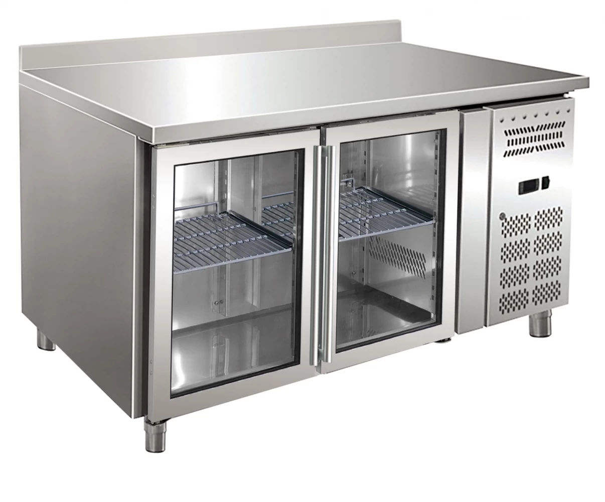 Tavolo refrigerato inox 2 porte vetro con alzatina temperatura normale ventilato