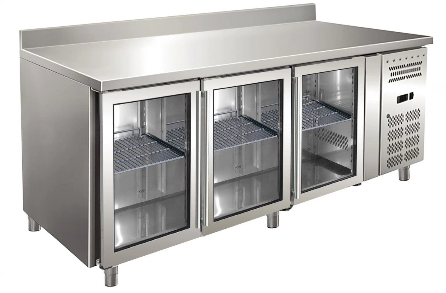 top in acciaio inox AISI 304 con alzatina posteriore;